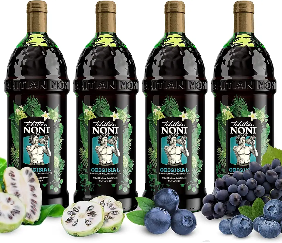 Noni by Morinda brings the legendary Tahitian noni fruit to your daily routine with pure, authentic noni juice blends and supplements. Our Original Noni Fruit Puree combines fresh Tahitian noni with natural blueberry and grape extracts (rich in resveratrol) for a powerful, all-natural wellness drink—packed with vitamins, minerals, antioxidants, and iridoids to support energy, immune health, digestion, and overall vitality. Available in convenient 1L bottles (single, 2-pack, 4-pack cases), plus 240-count fruit capsules (non-GMO, gluten-free) for easy supplementation. No added sugars, preservatives, or artificial ingredients—vegan, non-GMO, and traditionally used for centuries, Noni offers pure, potent support for a healthier you, backed by a 1-year warranty and 30-day returns.